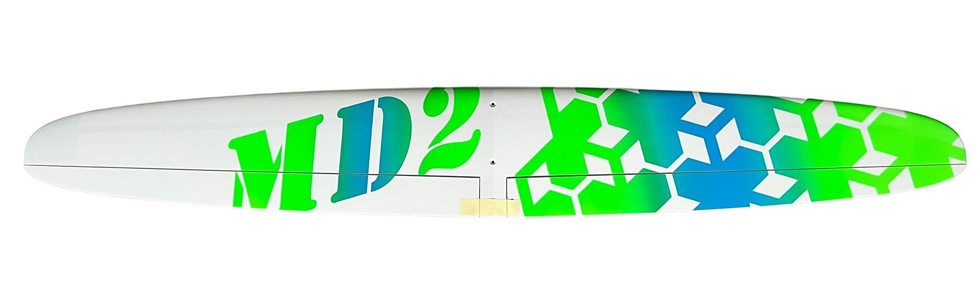 Great 1m DLGGot my glass MD2 and very pleased with it. Fit and finish and paint are all very good. Roomy servo area for a DLG. Used a three servo setup, taping the rudder straight and it flies very nicely w flaperons and elevator. Used Beadalon pull wire. A 2S lipo and R84 rx in front balance the plane nicely. The wing and tail bags allow me to keep the plane ready to fly.