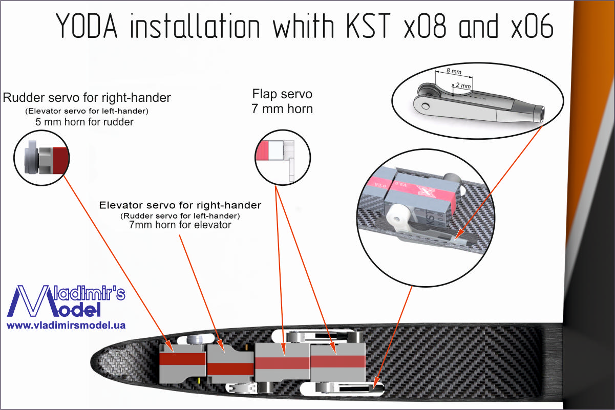| Flap servos | KST X08N, KST A08N, KST A08N LV, MKS DS75K-N, MKS HV75K-N, CHA LV06N, CHA HV06 |