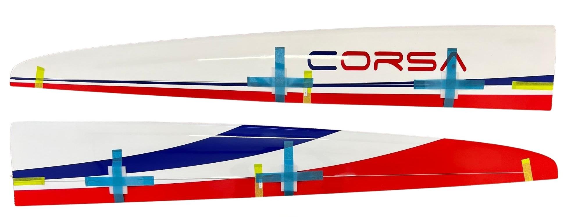 The all molded carbon and glass Corsa Electric has a superb speed range, very precise and predictable aerobatic handling, making it probably the best 2.75m aerobatoc soarer currently available. It is built strong enough for high energy aerobatics while also being light enough to be enjoyable when flown slowly.