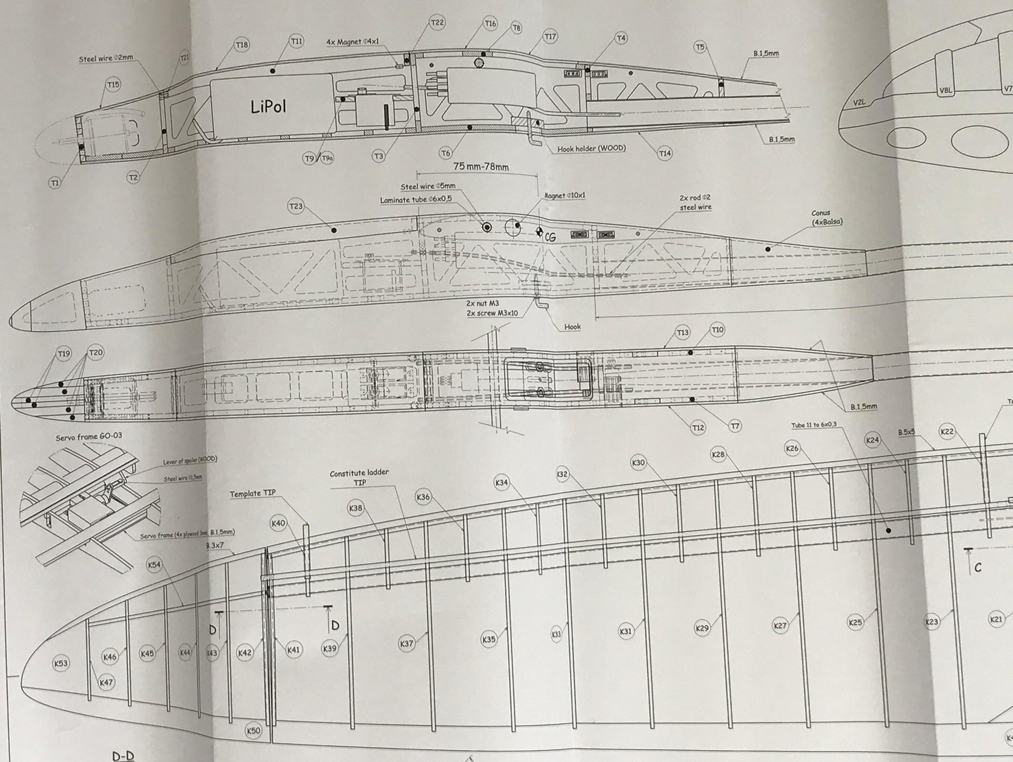 EliVery accurate kit makes building a dream. They look so beautiful, as I hoped. Didn't glue the 6 panels so they can be covered apart.I will use just a few drops glue in between them before flying. That may save unnecessarily damage in unhappy landings. The tail doesn't appeal to the graphics of the wings and will be build in much more transparent and lighter/stiffer. Tailseat in soft balsa will be exchanged . Fuselage is neat and stiff but nose was to be thickened to get a little Axy outrunner innside. Looking forward to fly this beauty in a few weeks.