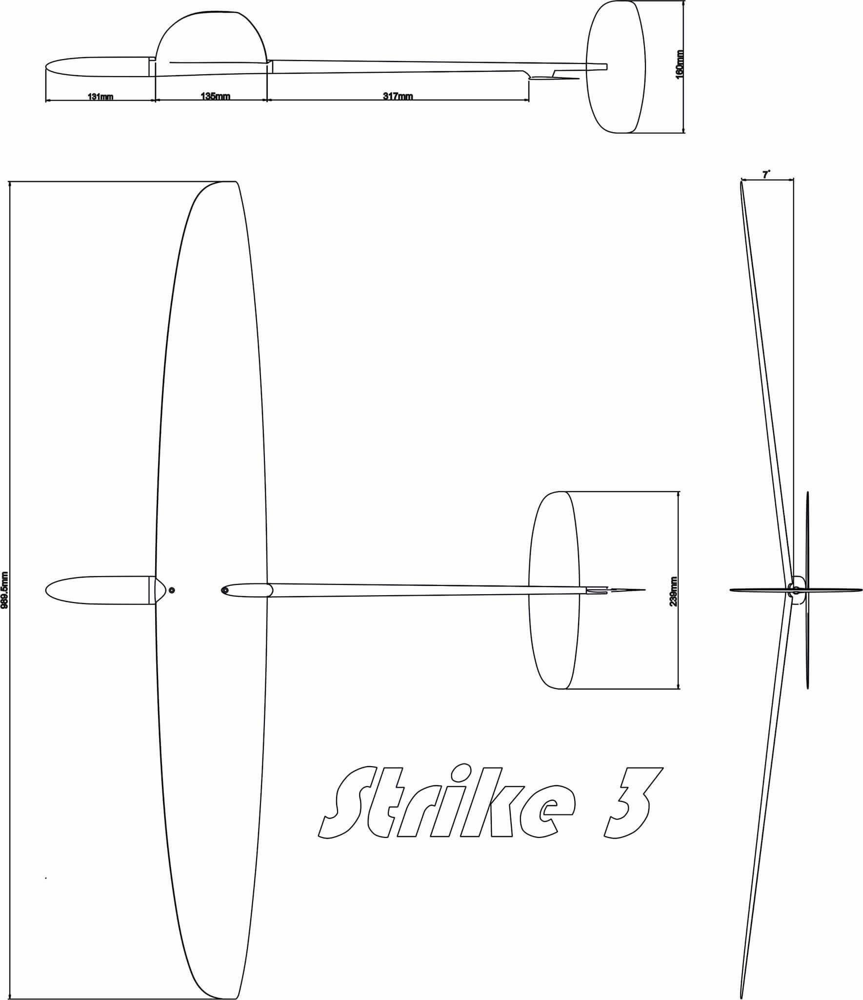 Strike 3 ReviewThe Strike 3 is a quality one metre span DLG with an excellent surface finish and is commendably light, though some care and forethought is necessary to install everything in the very cramped space in the fuselage. However, the removable nosecone is a bonus for easy access.