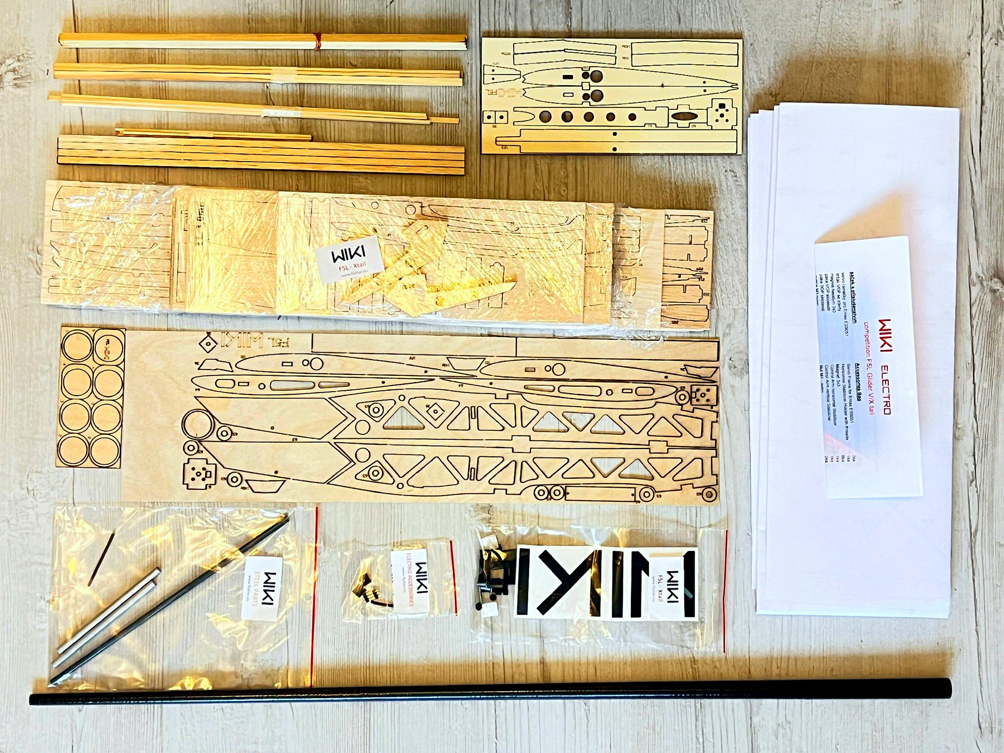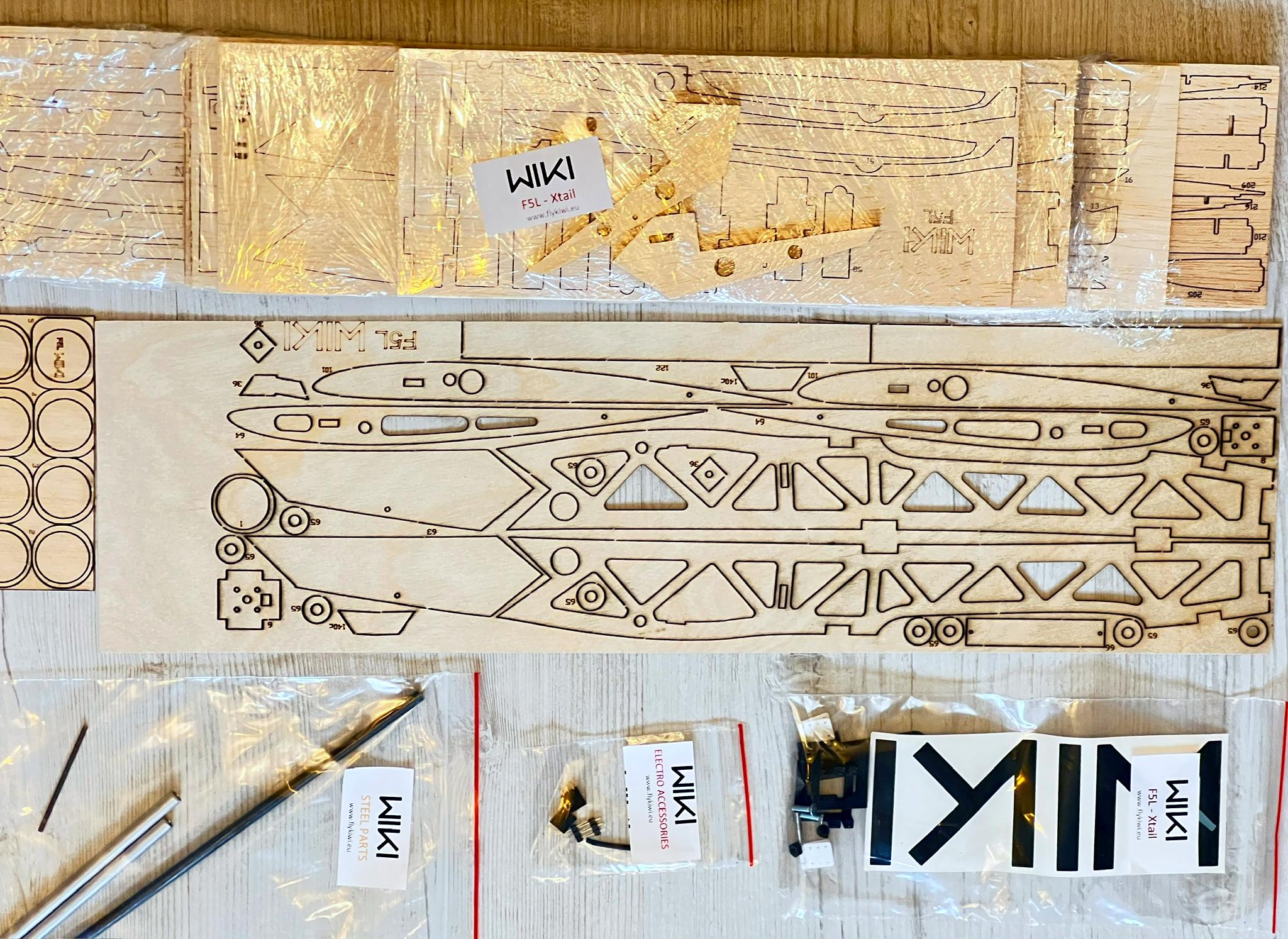 The wiki build may seem unconventional but anyone with average building skills can make this plane. The kit is very complete but there are no written instructions. The builder should be able to use plans and photos. Some dry fitting and preplanning is required but nothing unreasonable. Laser cut parts are accurate, but numbers are burned outside the parts and not on. After being built the plane does in fact meet suggested build weights.
