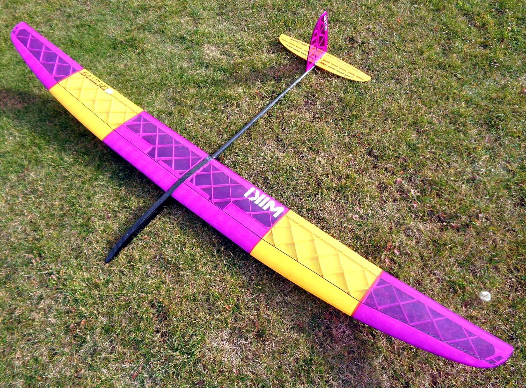 As far as flight performance wiki has a wide speed range and flies well both empty and ballasted. I would suggest a more forward CG as I have been flying in front of the suggested 83mm. My plane with some full weight flourescent Oracover was about 390 grams and although dead air min sink is amazing, the wing loading is probably too low for any kind of active air. The wing really comes alive with some ballast and in active conditions. Great plane.